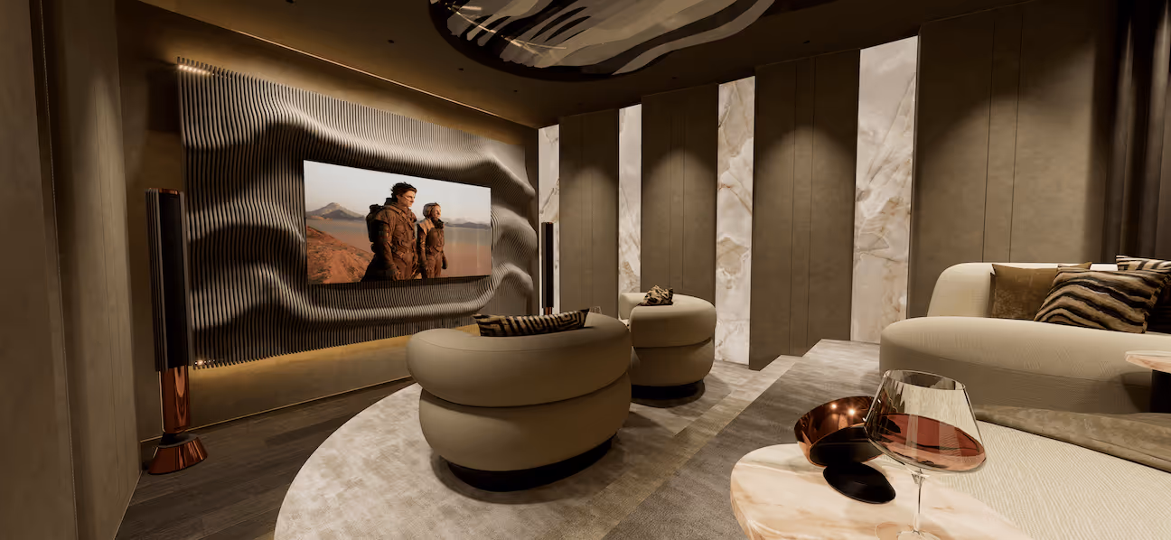Met het interieur ontwerp als rode draad, kunnen we samen het huis laten leven. Muziek en verlichting geeft warmte. Een overzichtelijk domotica systeem geeft gemak. Een goed samengesteld beveiligingsysteem geeft rust en de tv’s in huis zorgen voor vermaak en ontspanning. Door samenwerking zijn deze belangrijke onderdelen op een perfecte manier te integreren. Als we samen in een vroeg stadium starten, zorgt DMT Group met de juiste specialisten voor de juiste verbindingen met alle partijen om met elkaar het ultieme afwerkingsniveau te bereiken.